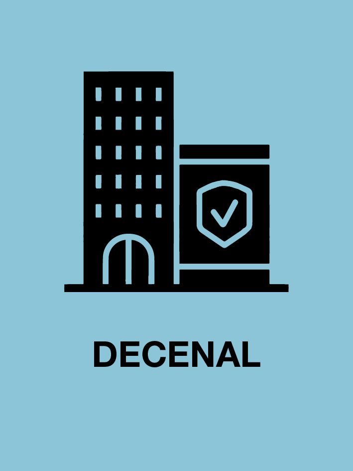 El seguro decenal, obligatorio por ley para edificios cuyo destino principal sea vivienda, garantiza durante un periodo de 10 Años todos los daños producidos por vicios o defectos de la construcción, y que afectan de manera directa a la resistencia del edificio.